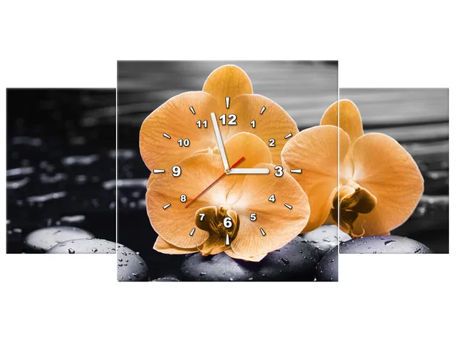 Úvod » Obrazy » Obrazy s hodinami » Hodiny na stenu Oranžové orchidey