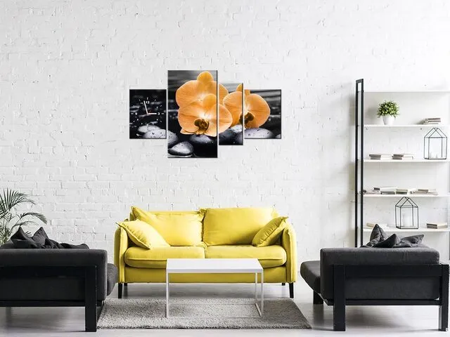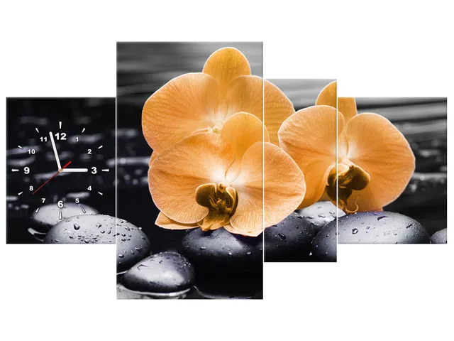 Úvod » Obrazy » Obrazy s hodinami » Hodiny na stenu Oranžové orchidey