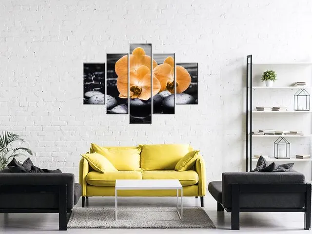 Úvod » Obrazy » Obrazy s hodinami » Hodiny na stenu Oranžové orchidey