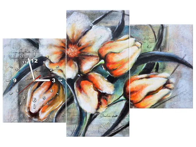 ZP3897A_3AW Hodiny na stenu ako obraz Pastelové tulipány |