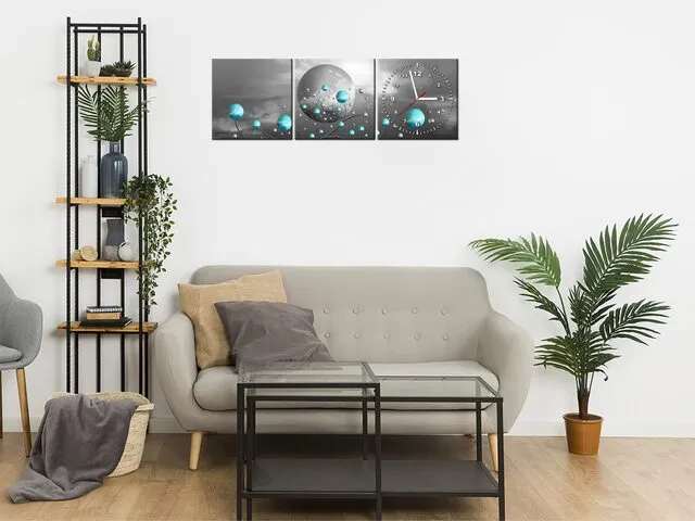 Úvod » Obrazy » Obrazy s hodinami » Hodiny na stenu do chodby Tyrkysové gule na sivom pozadí