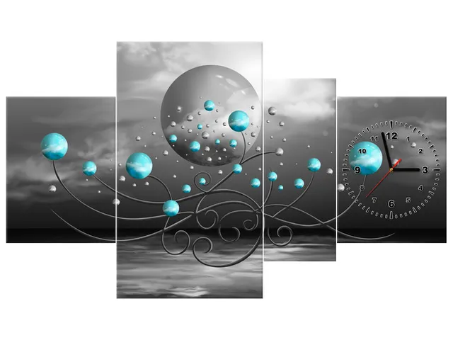 Úvod » Obrazy » Obrazy s hodinami » Hodiny na stenu do chodby Tyrkysové gule na sivom pozadí