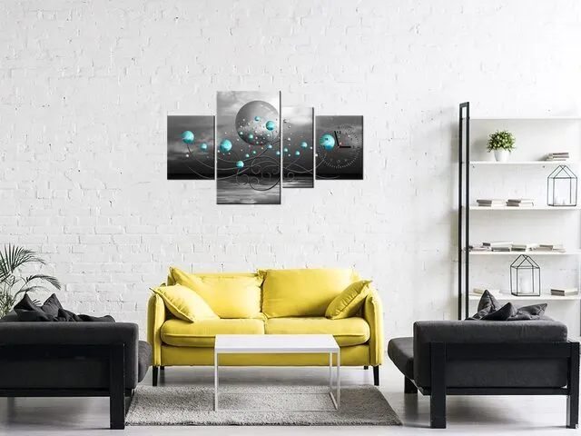 ZP5590A_1I Hodiny na stenu do chodby Tyrkysové gule na sivom pozadí |