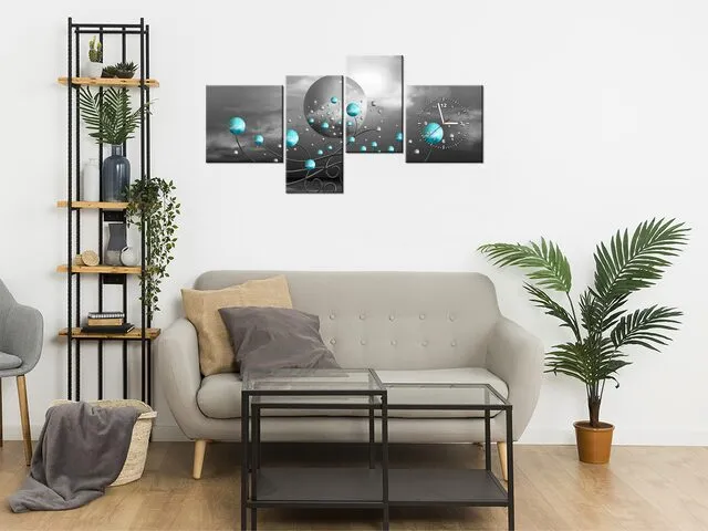 Úvod » Obrazy » Obrazy s hodinami » Hodiny na stenu do chodby Tyrkysové gule na sivom pozadí