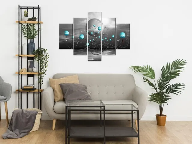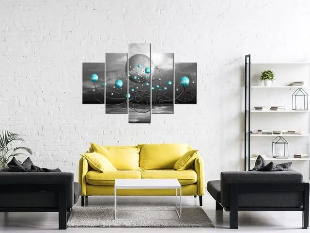 Úvod » Obrazy » Obrazy s hodinami » Hodiny na stenu do chodby Tyrkysové gule na sivom pozadí