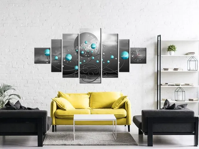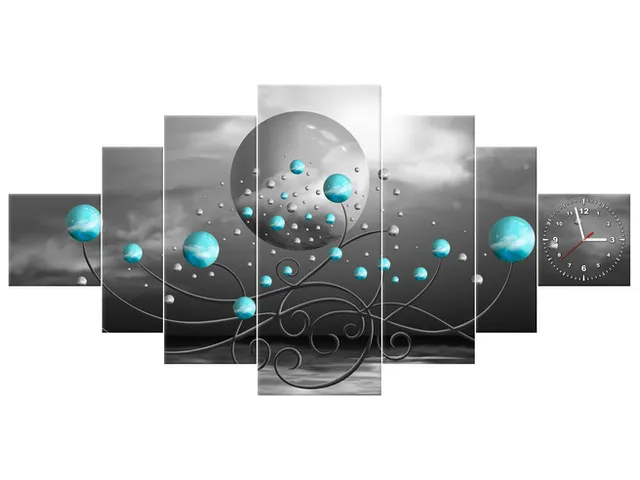 Úvod » Obrazy » Obrazy s hodinami » Hodiny na stenu do chodby Tyrkysové gule na sivom pozadí