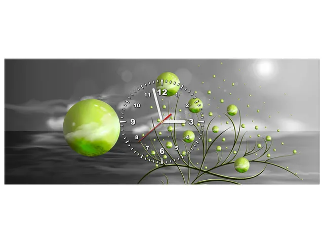 Úvod » Obrazy » Obrazy s hodinami » Hodiny na stenu do spálne Zelené gule v noci