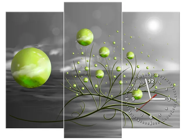 Úvod » Obrazy » Obrazy s hodinami » Hodiny na stenu do spálne Zelené gule v noci