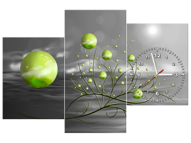 Úvod » Obrazy » Obrazy s hodinami » Hodiny na stenu do spálne Zelené gule v noci