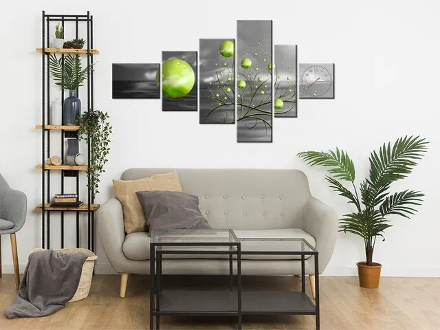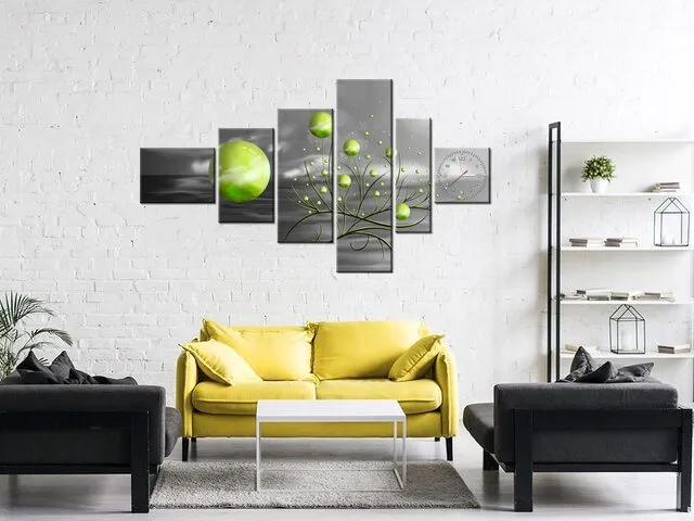 Úvod » Obrazy » Obrazy s hodinami » Hodiny na stenu do spálne Zelené gule v noci