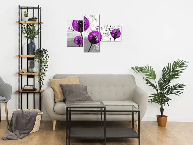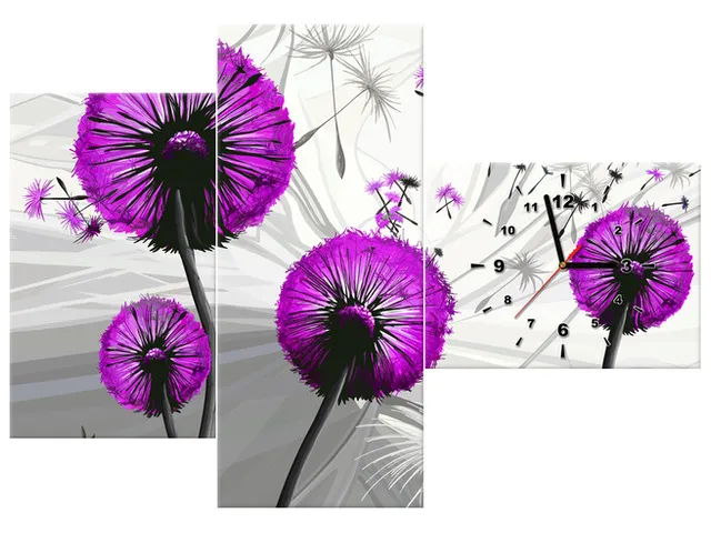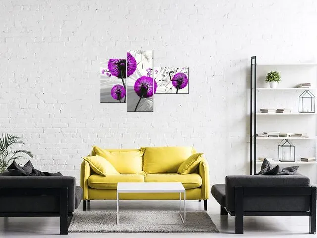 Úvod » Obrazy » Obrazy s hodinami » Hodiny tlačené na plátne Púpavy vo fialovej