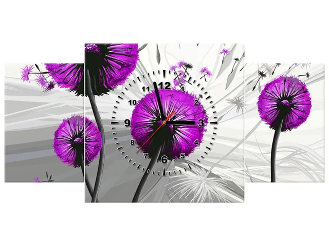 Úvod » Obrazy » Obrazy s hodinami » Hodiny tlačené na plátne Púpavy vo fialovej