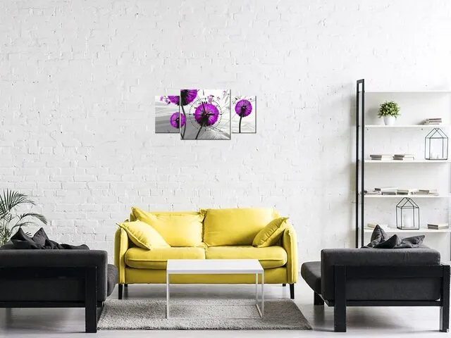 ZP5122A_4O Hodiny tlačené na plátne Púpavy vo fialovej |
