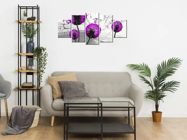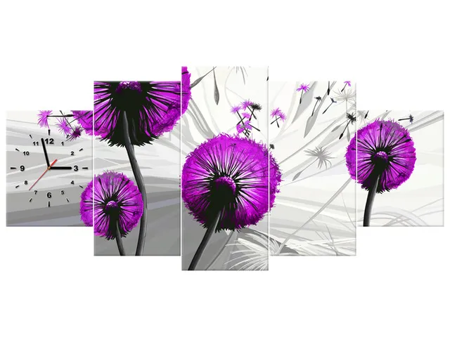 Úvod » Obrazy » Obrazy s hodinami » Hodiny tlačené na plátne Púpavy vo fialovej