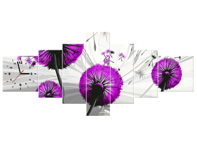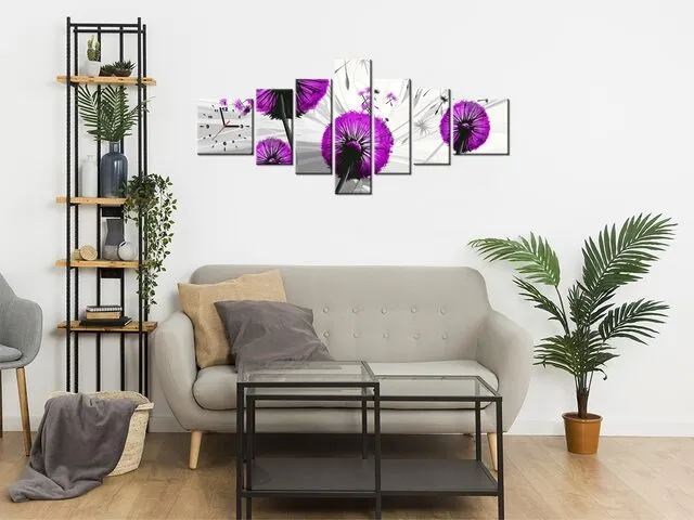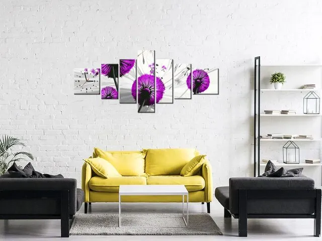 Úvod » Obrazy » Obrazy s hodinami » Hodiny tlačené na plátne Púpavy vo fialovej