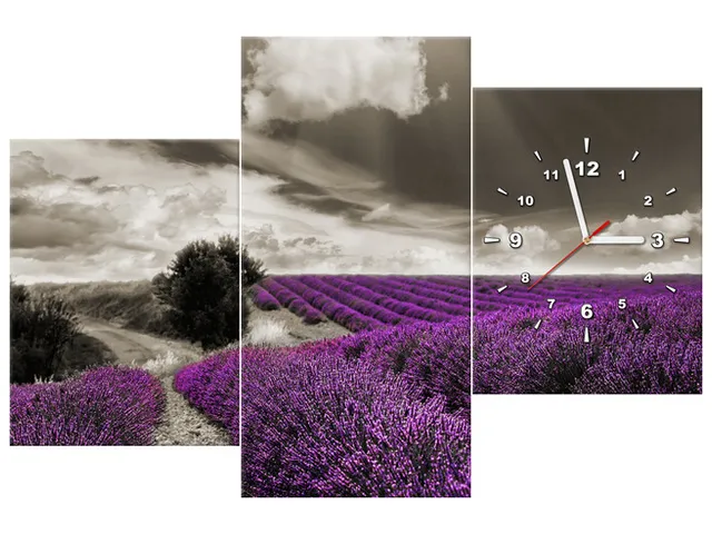 Úvod » Obrazy » Obrazy s hodinami » Krásny obraz s hodinami Levanduľový výhľad