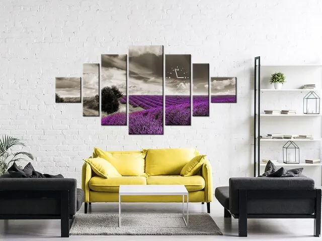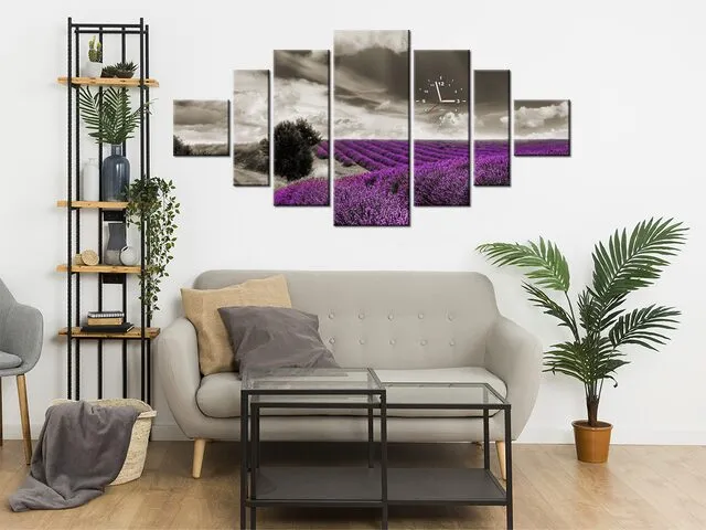 Úvod » Obrazy » Obrazy s hodinami » Krásny obraz s hodinami Levanduľový výhľad