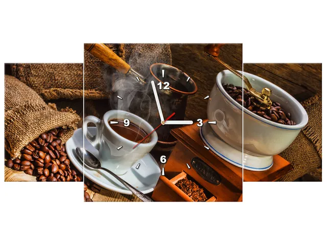 Úvod » Obrazy » Obrazy s hodinami » Kuchynské hodiny Svet kávičkára