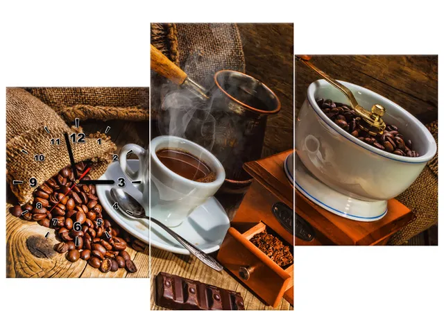 Úvod » Obrazy » Obrazy s hodinami » Kuchynské hodiny Svet kávičkára