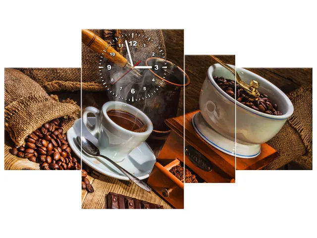 Úvod » Obrazy » Obrazy s hodinami » Kuchynské hodiny Svet kávičkára
