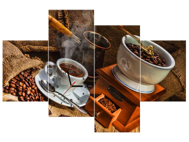 Úvod » Obrazy » Obrazy s hodinami » Kuchynské hodiny Svet kávičkára
