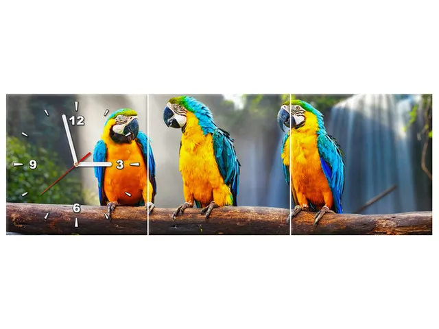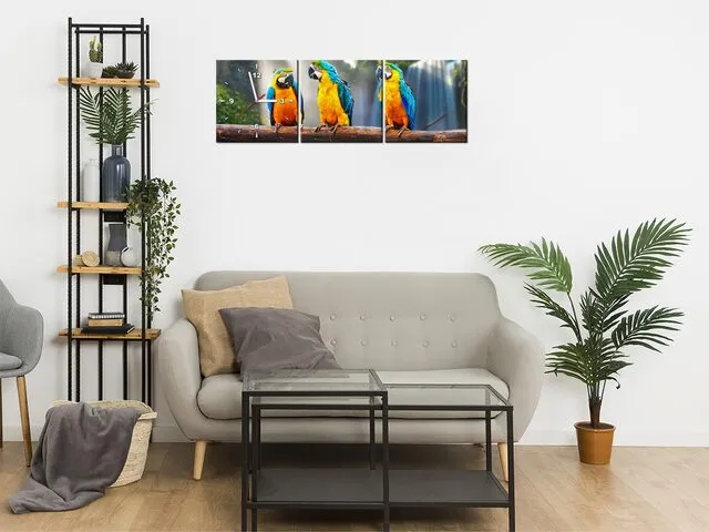 Úvod » Obrazy » Obrazy s hodinami » Luxusne hodiny na stenu Tri papagáje