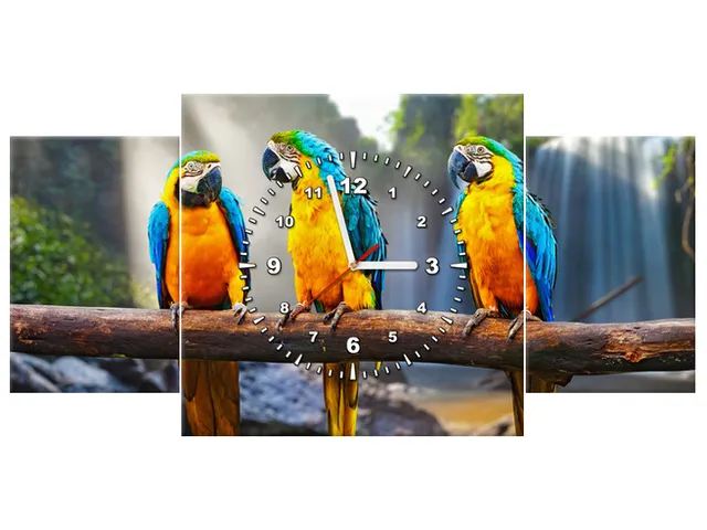 Úvod » Obrazy » Obrazy s hodinami » Luxusne hodiny na stenu Tri papagáje
