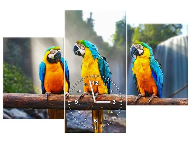 Úvod » Obrazy » Obrazy s hodinami » Luxusne hodiny na stenu Tri papagáje