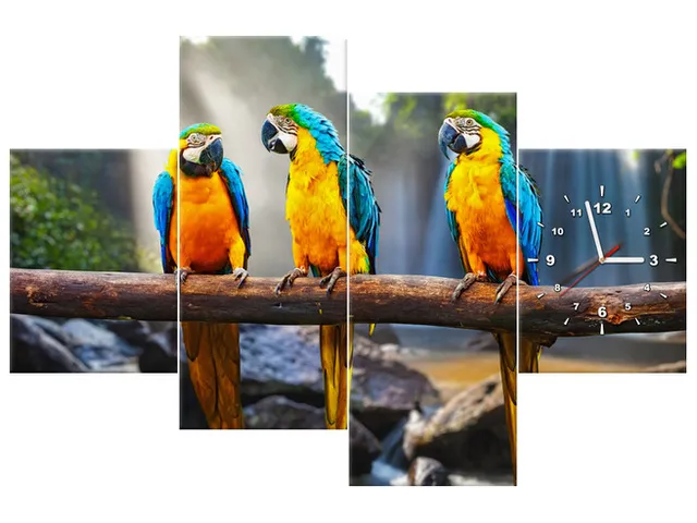 Barion Pixel Luxusne hodiny na stenu Tri papagáje