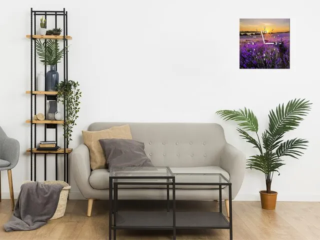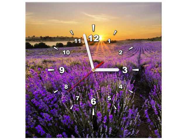 Úvod » Obrazy » Obrazy s hodinami » Luxusné nástenné hodiny na plátne Levanduľové pole
