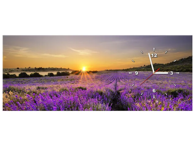 Úvod » Obrazy » Obrazy s hodinami » Luxusné nástenné hodiny na plátne Levanduľové pole