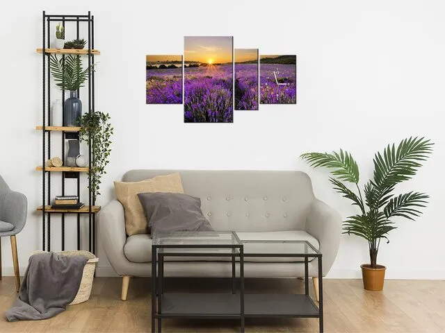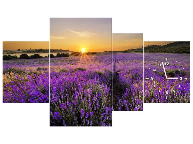 Úvod » Obrazy » Obrazy s hodinami » Luxusné nástenné hodiny na plátne Levanduľové pole
