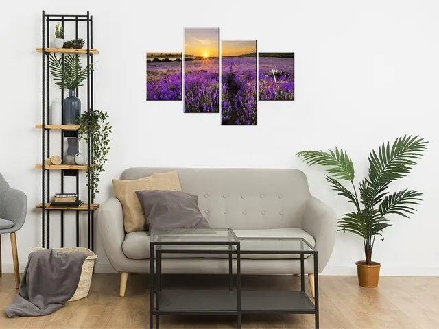 Úvod » Obrazy » Obrazy s hodinami » Luxusné nástenné hodiny na plátne Levanduľové pole