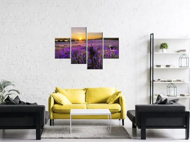 Luxusné nástenné hodiny na plátne Levanduľové pole