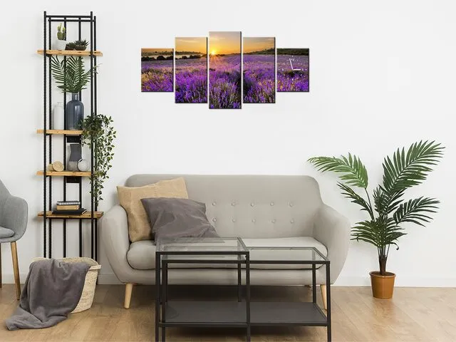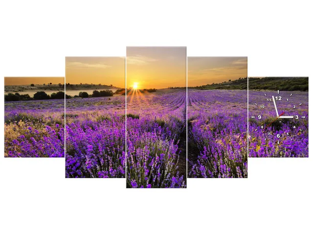 Úvod » Obrazy » Obrazy s hodinami » Luxusné nástenné hodiny na plátne Levanduľové pole
