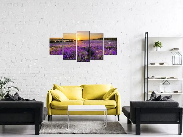Luxusné nástenné hodiny na plátne Levanduľové pole