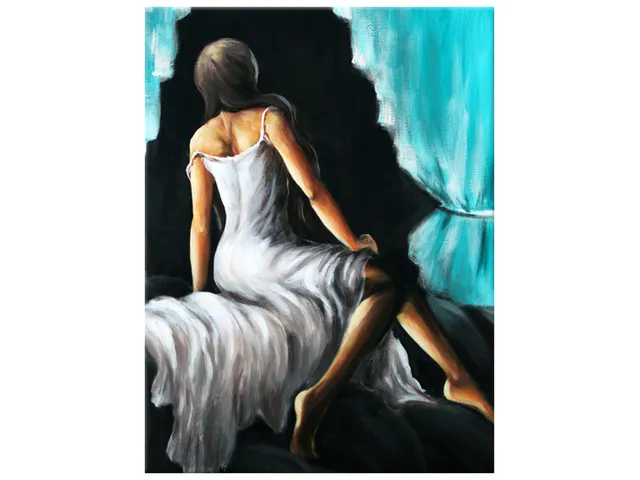 Úvod » Obrazy » Obrazy na plátne » Ľudia » Luxusný obraz Pekné dievča v tyrkysovej farbe