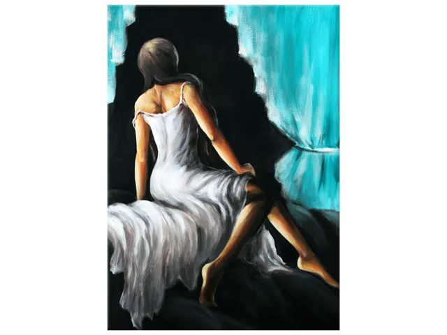 Úvod » Obrazy » Obrazy na plátne » Ľudia » Luxusný obraz Pekné dievča v tyrkysovej farbe