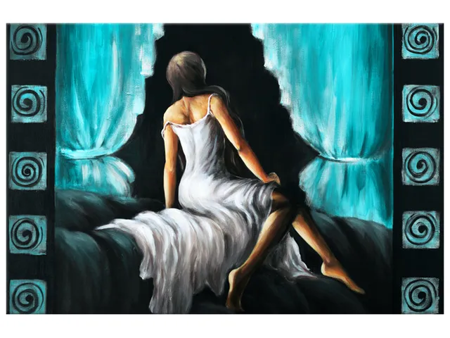 Úvod » Obrazy » Obrazy na plátne » Ľudia » Luxusný obraz Pekné dievča v tyrkysovej farbe