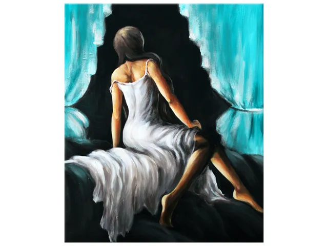 Úvod » Obrazy » Obrazy na plátne » Ľudia » Luxusný obraz Pekné dievča v tyrkysovej farbe