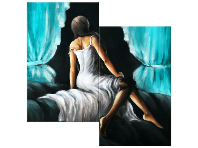 Úvod » Obrazy » Obrazy na plátne » Ľudia » Luxusný obraz Pekné dievča v tyrkysovej farbe