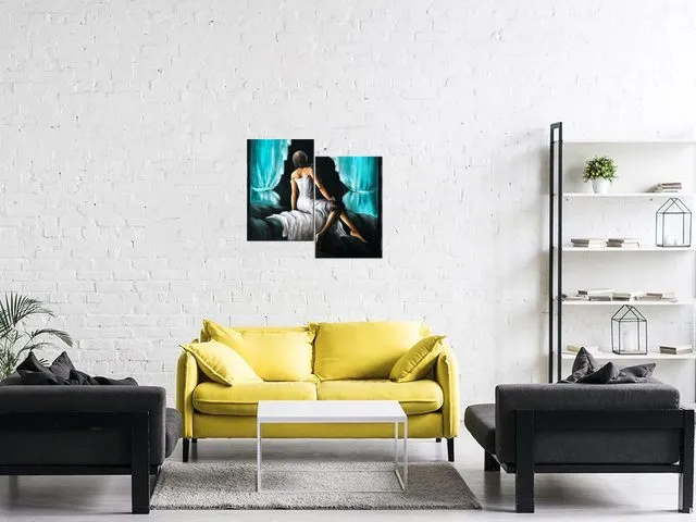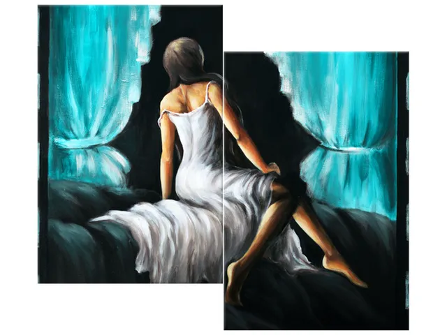 Úvod » Obrazy » Obrazy na plátne » Ľudia » Luxusný obraz Pekné dievča v tyrkysovej farbe