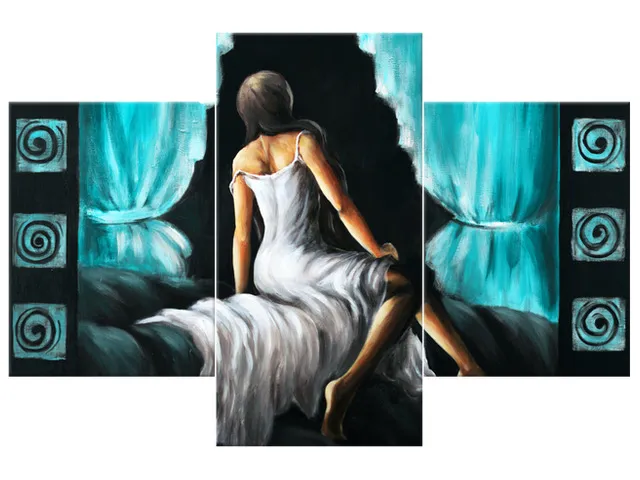Úvod » Obrazy » Obrazy na plátne » Ľudia » Luxusný obraz Pekné dievča v tyrkysovej farbe