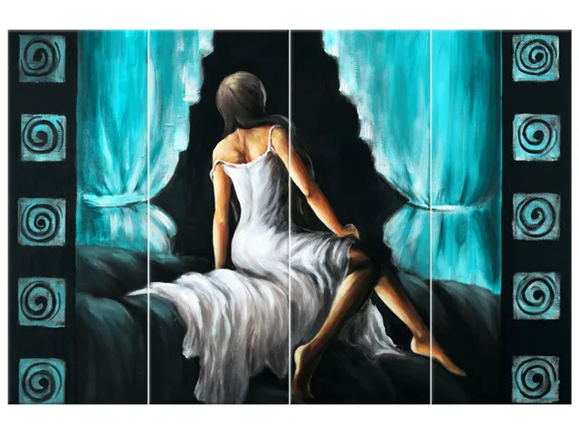 Úvod » Obrazy » Obrazy na plátne » Ľudia » Luxusný obraz Pekné dievča v tyrkysovej farbe