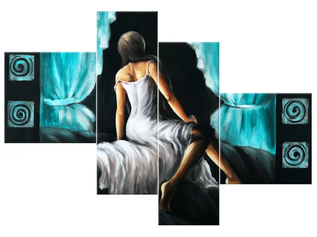Úvod » Obrazy » Obrazy na plátne » Ľudia » Luxusný obraz Pekné dievča v tyrkysovej farbe