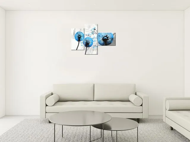4027A_3AX Luxusný obraz na plátne Púpavy v modrej |