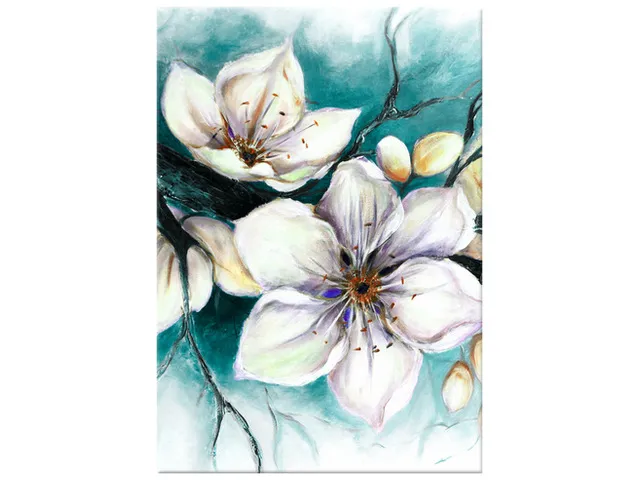 Luxusný obraz na stenu Puky višne v tyrkysovej