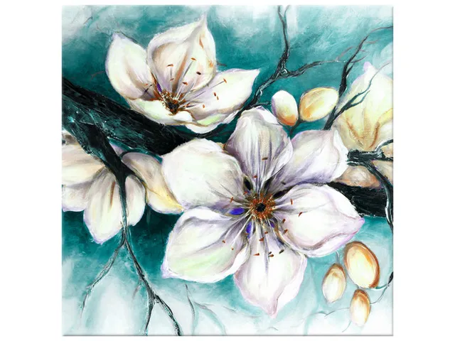 4586A_1Q Luxusný obraz na stenu Puky višne v tyrkysovej |
