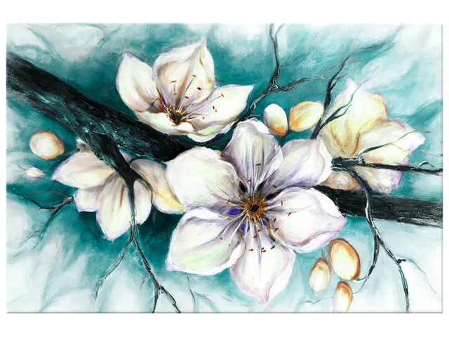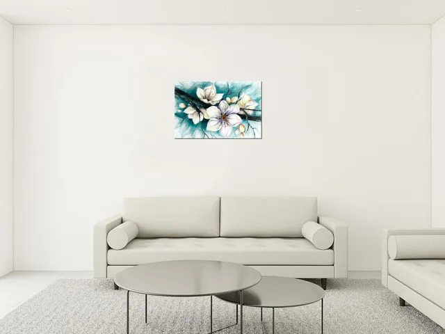 4586A_1M Luxusný obraz na stenu Puky višne v tyrkysovej |