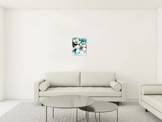 Luxusný obraz na stenu Puky višne v tyrkysovej